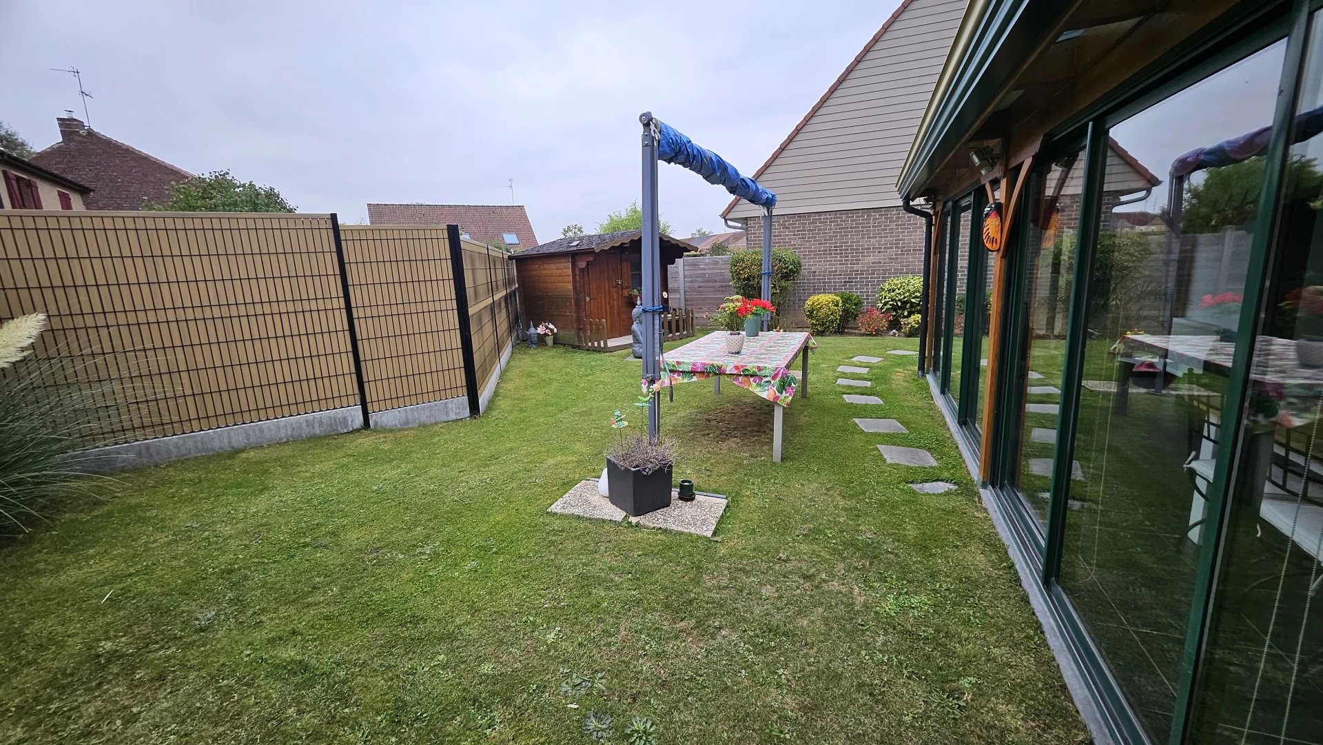 LIMITE NEUVILLE , Magnifique maison individuelle , rénovée avec goût , comprenant séjour lumineux , belle véranda ouverte , cuisine équipée , 3 chambres , belle salle de bains , jardin sud , garage .